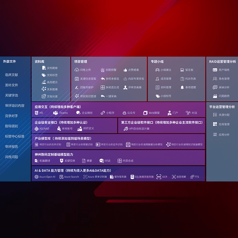 医疗器械产品上市前,,,,要熟悉严格与繁复评审标准,,,,整理分析监管机构指导文件中的海量信息。。。。企业急需一个智能化解决方案,,,,提升知识管理效率,,,提高评审通过率,,,,以提升其市场竞争力。。。
